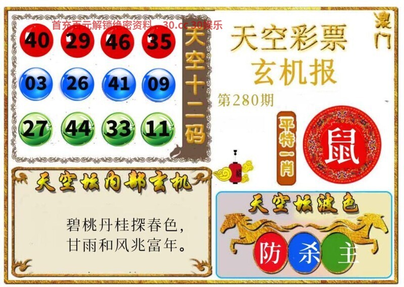 280期:绝杀三肖【狗虎鸡】开:鼠42准